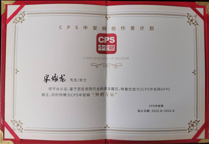 总经理行业履历资深,经验丰富,特聘为CPS中安网“外聘专家”